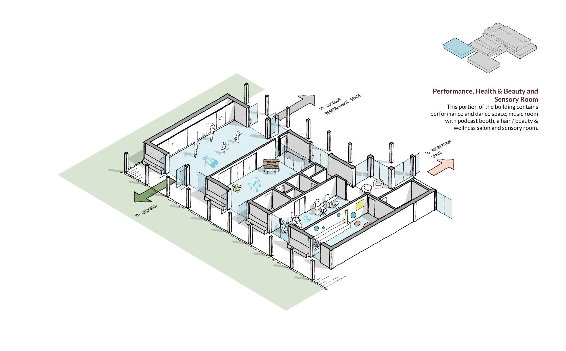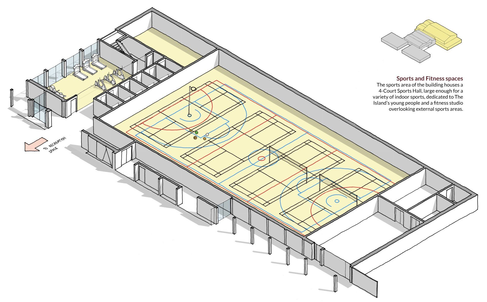 Key activities and spaces within the buildings