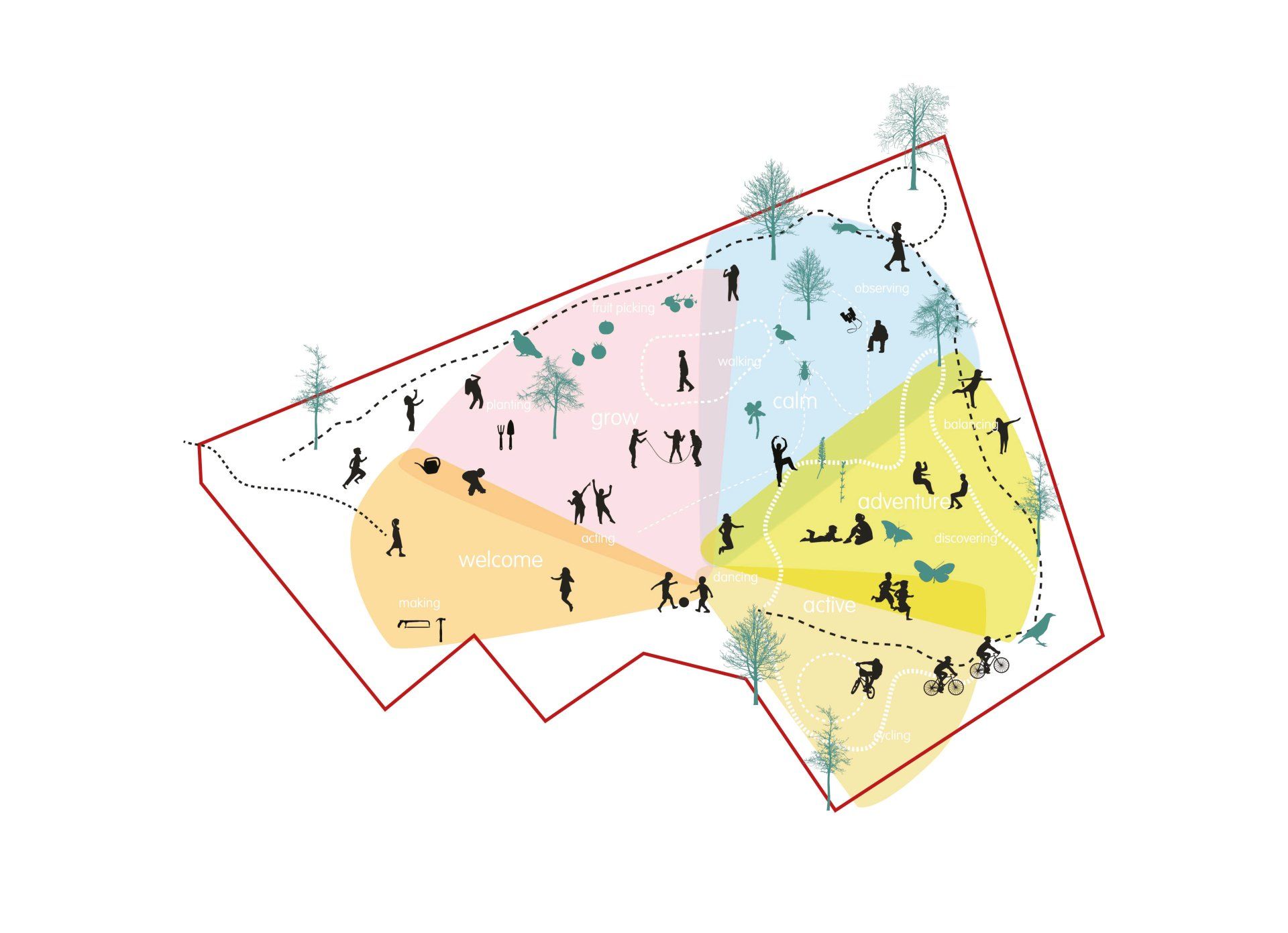 Each of these distinct habitats will allow for unique interactions with nature whilst also catering for a wide range of potential activities. This will enable site users to play an active role in defining how the spaces will be used. Integrating these five habitats will create a diverse and inspiring landscape that is both environmentally and socially sustainable.